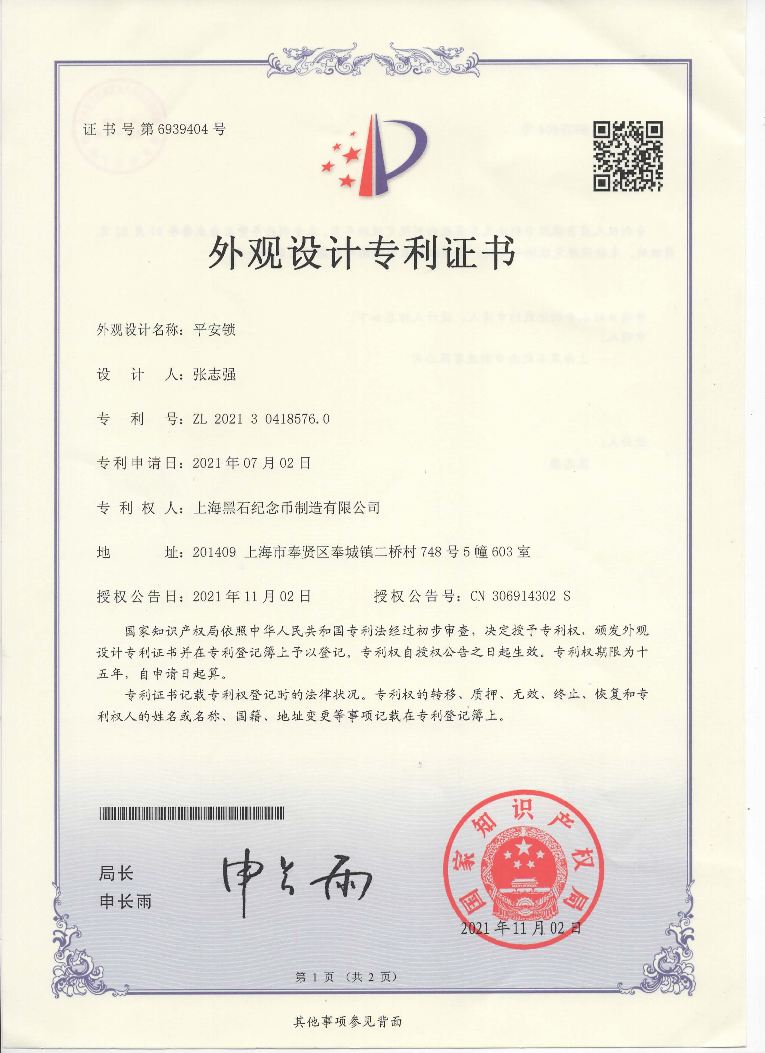 超過300萬枚紀念幣定制的歷練,擁有行業(yè)內強大的研發(fā)生產設計能力·榮獲多項專利證書